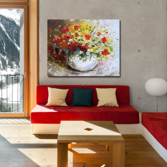 Obrazy z kwiatami w wazonie składają się w atrakcyjną formę dekoracji wnętrza. Z trudem wyszukać bardziej wszechstronną i uniwersalną tematykę ozdób, niż akcenty roślinne na obrazach z kwiatami w wazonie. Nie tylko ilość gatunków jest fascynująca, ale także ilość ich odmian, zarówno tych naturalnych, jak i sztucznie krzyżowanych i urozmaicanych przez człowieka. Z pomocą tego elementy kwiatowe trafiają się w setkach odmian, od klasycznych po strzępiaste i te o doskonałych odcieniach lub kształtach. Jednym z znaczących czynników wpływających na tę rozmaitość jest spojrzenie fotografa, który w banalnym tulipanie lub innym kwiatku na obrazku dostrzega przedmiot artystycznej kreacji, przedstawiając go w płaszczu deszczowych kropelek lub każdym etapie przekwitania, czy w otoczeniu innych kwiatów w bukiecie.